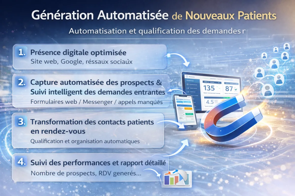 Tunnel de Conversion : Un flux constant de nouveaux patients pour remplir vos plages horaires.